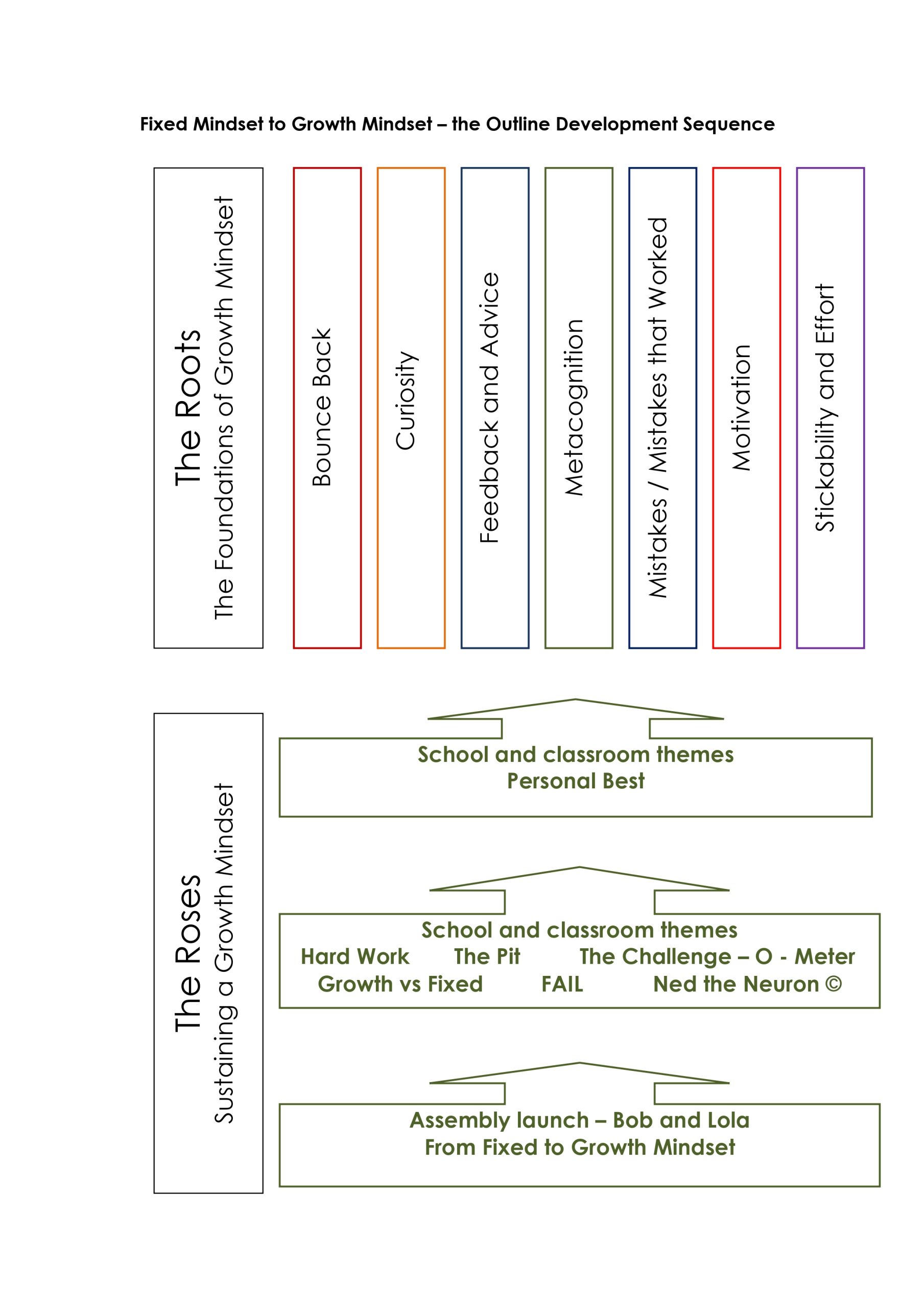 Personal Best provides assembly and / or lesson plans and story, to follow up and further embed a Growth Mindset, providing the transition from the foundations (The Roots) through Personal Best (self-improvement) and then onto the Roses of Success;